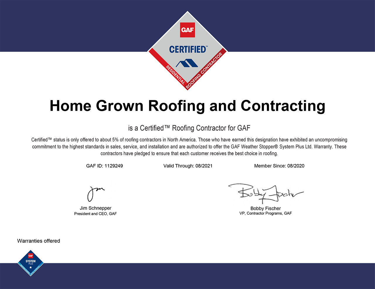 OUR ROOFING CERTIFICATIONS